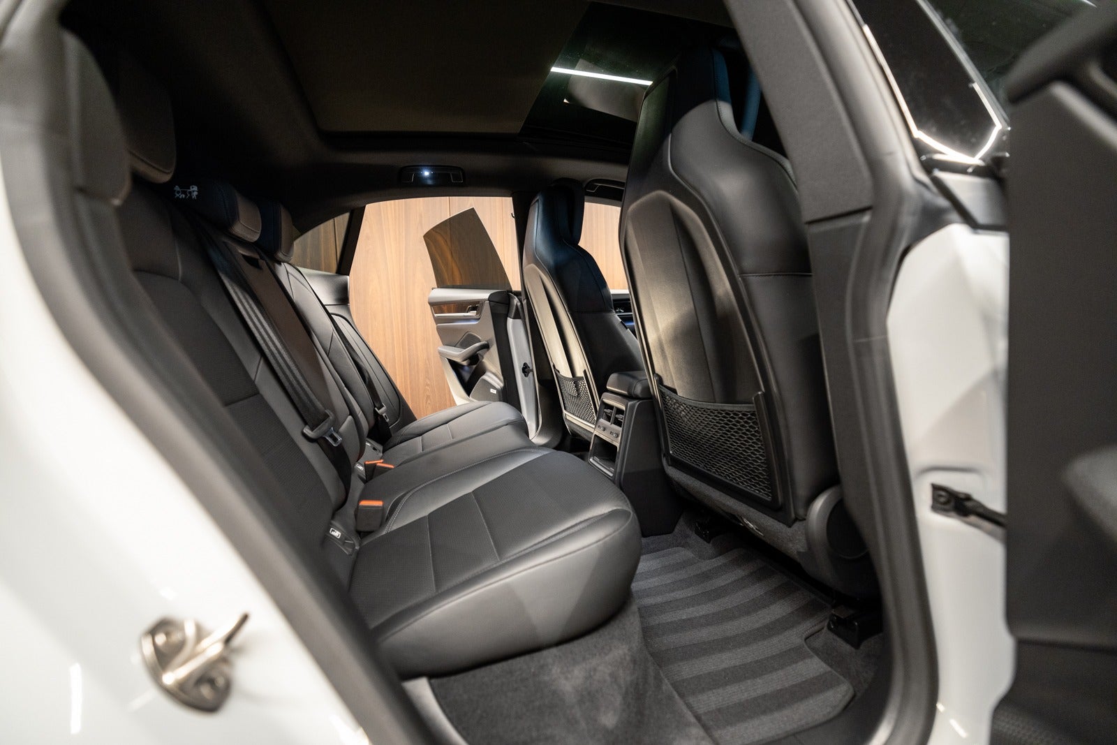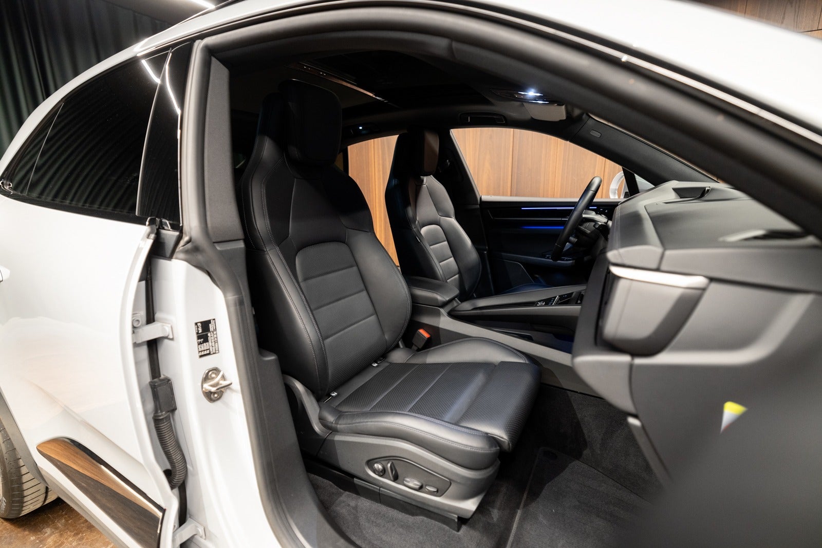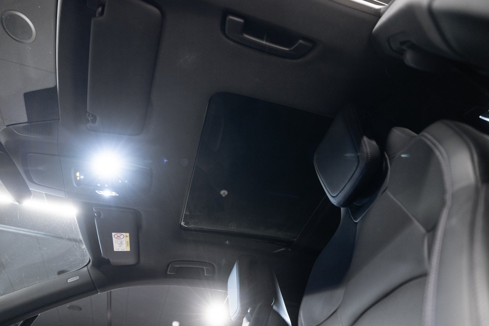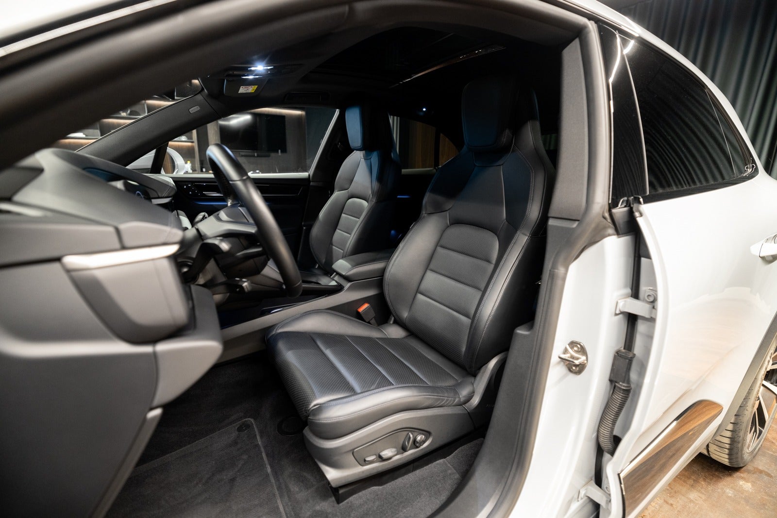 Sort læderkabine med læderbeklædt instrumentbord