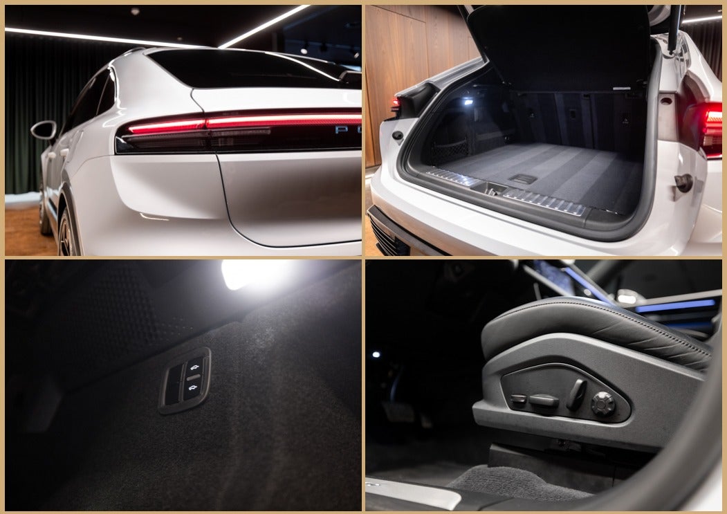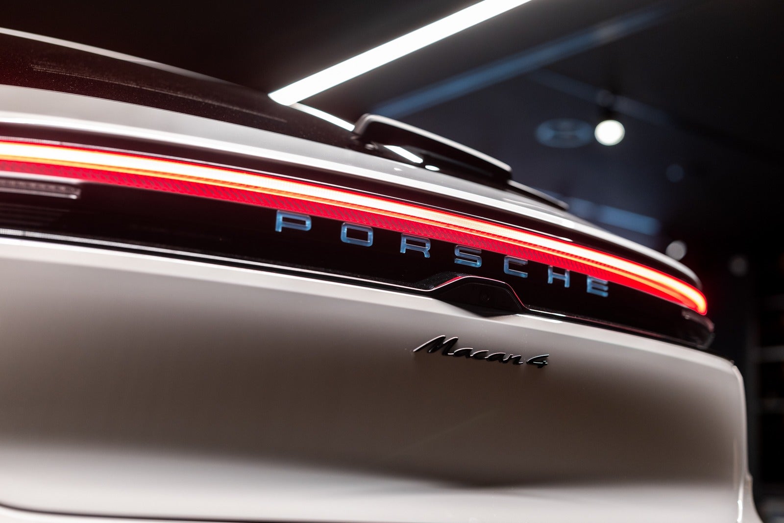 8VQ LED taillights including light strip and Porsche logo in Glacier Ice Blue